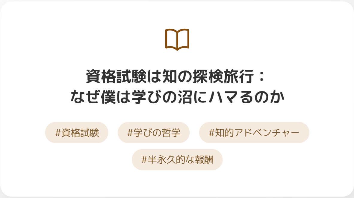 今回は、そんなぼくがなぜ資格試験にハマるのか、その魅力と、ぼくなりの「学びの哲学」について、静かに語っていきたいと思います。