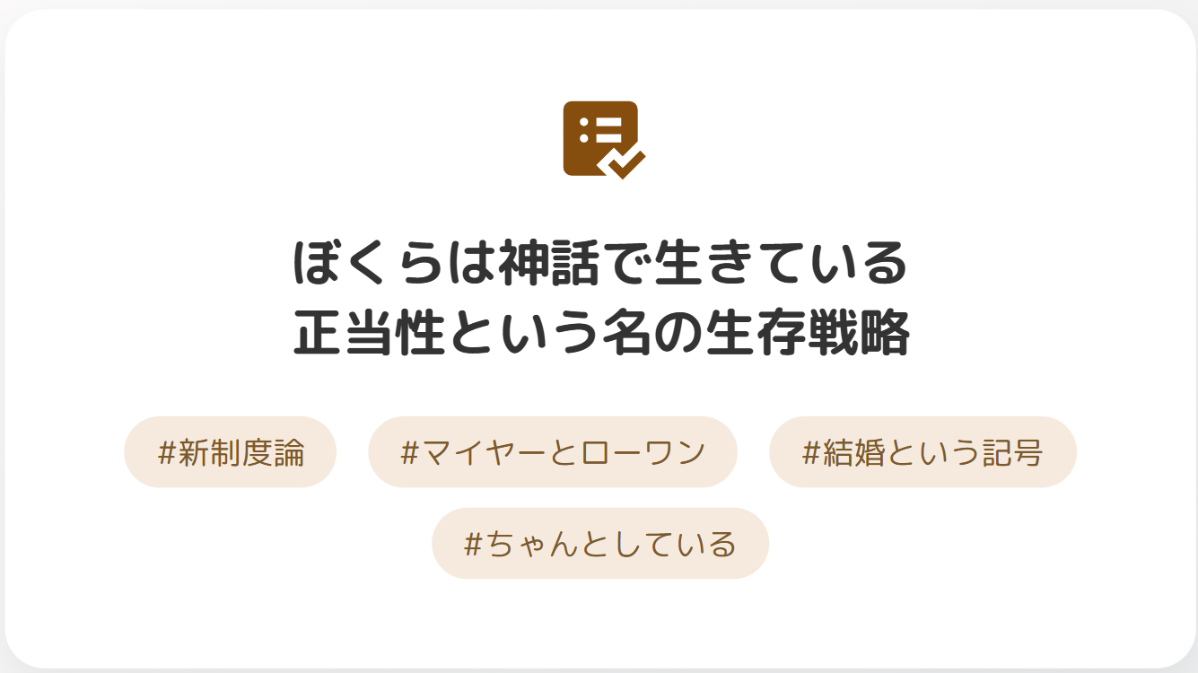 最近とあるDeepResearchを読んでいて、マイヤーとローワンという2人の学者さん、まあ界隈では新制度論ものとかいうらしいのだけれど、その2人が大変に世の中の本質を抉り出す示唆に富んだ内容のレポートを発表していまして。