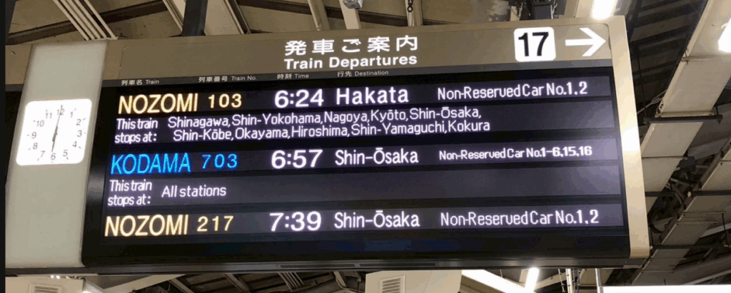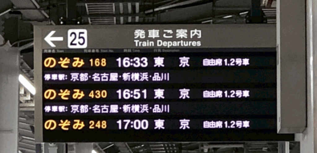 - 17時頃:新大阪駅から新幹線に乗り、東京へ