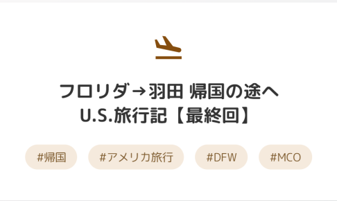 フロリダのMCOからDFW空港を経由して羽田空港へ。深夜出発、乗り継ぎ、機内食など、アメリカから日本への帰国フライトの詳細を紹介。総額45万の4泊6日の旅行記、完結編。