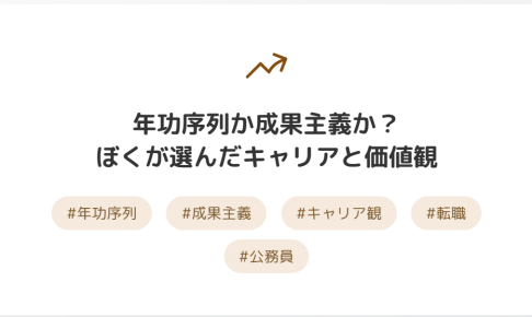 24歳で公務員を退職する筆者が、年功序列と成果主義を比較。公務員の年功序列制度への違和感と、成長できる成果主義への憧れを語り、ベンチャー企業への転職を決意した経緯を説明。