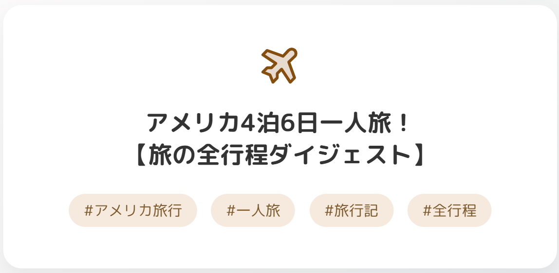 今年は9月上旬の夏季休暇で、4泊6日のアメリカ旅行を楽しんできました。修学旅行を除けば、海外に行くのも、飛行機に乗るのも、人生初の体験です。