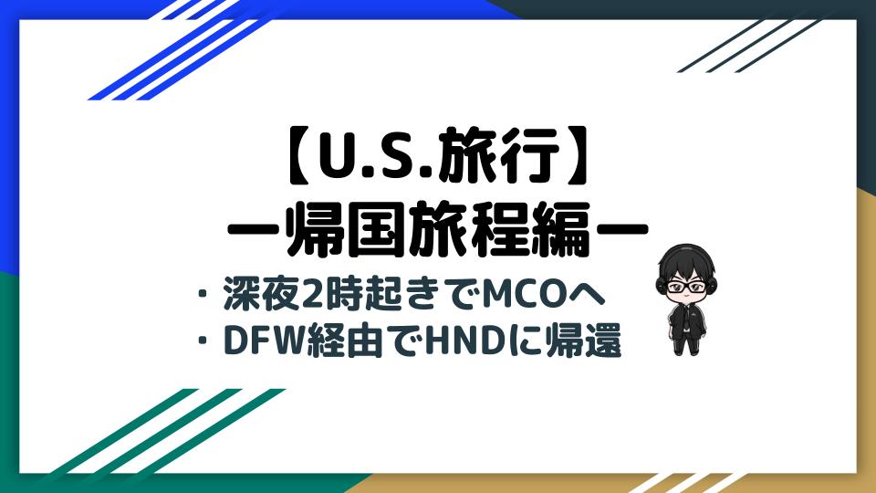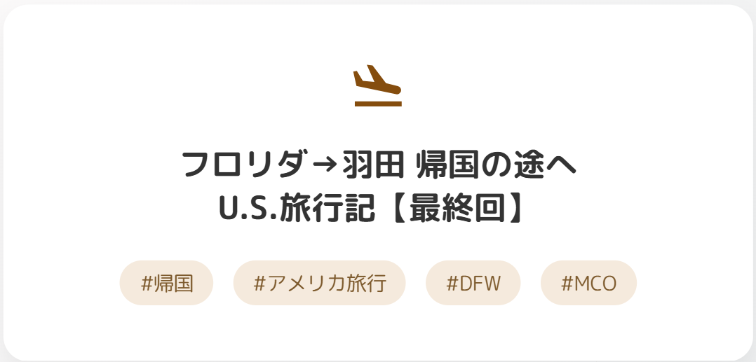 【U.S.旅:PART10】U.S.旅行の幕引き:FL州MCO→TX州DFW→HNDへの帰国便レポート